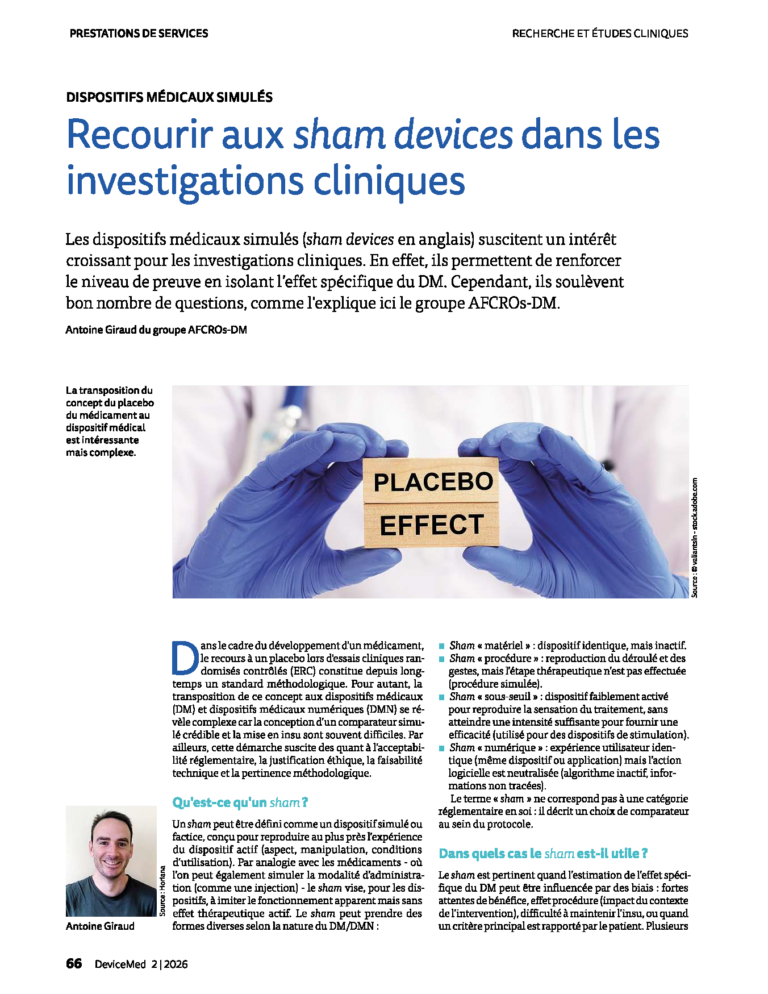 🆕 mar-avr : Recourir aux sham devices dans les investigations cliniques par Antoine Giraud